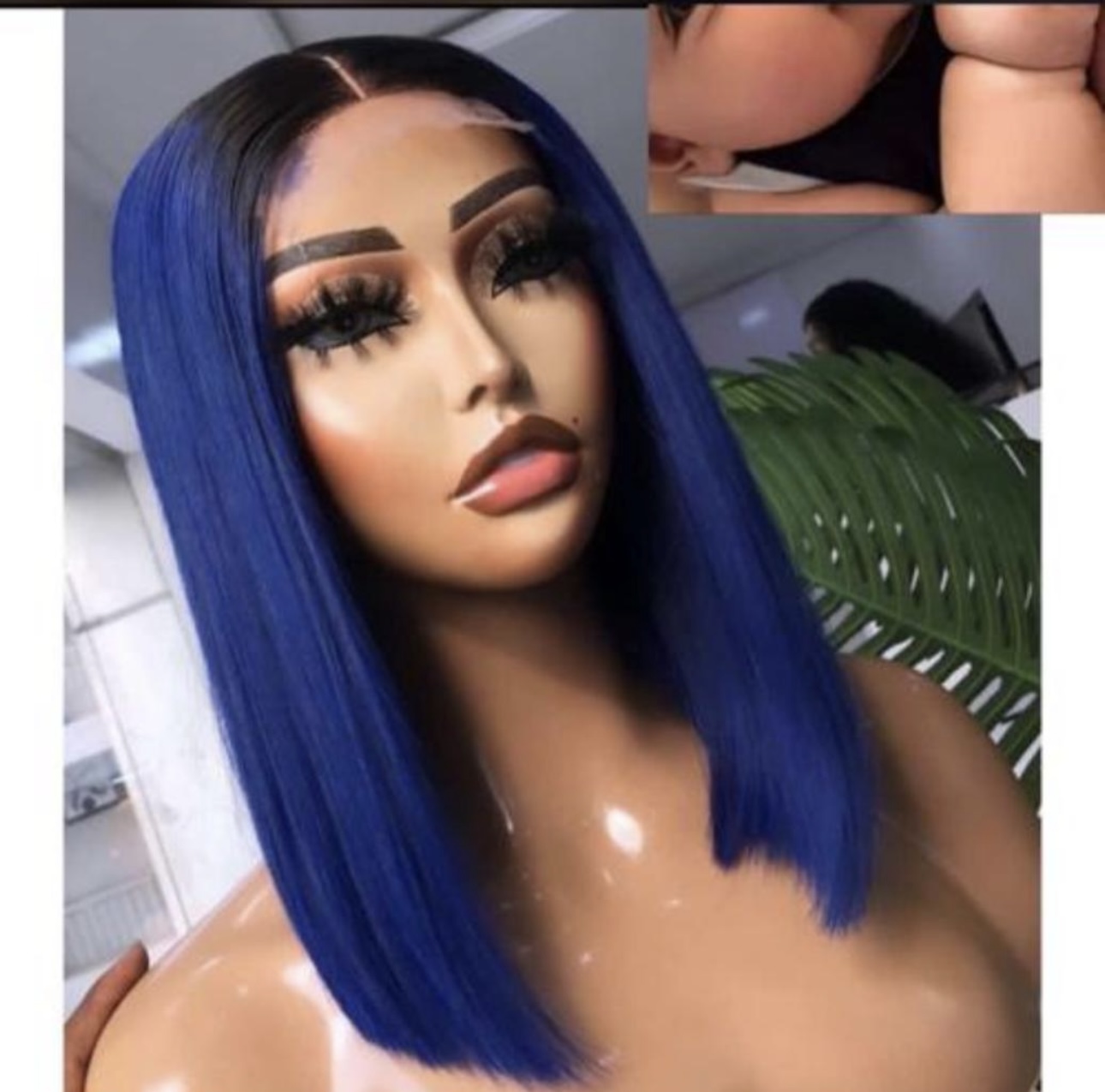 Vietnamese 14inches Bone straight Blue with dark root color Human HairVietnamese 14inches Bone straight Blue with dark root color Human Hair